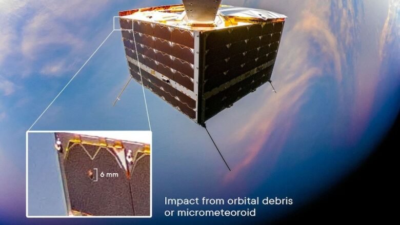Prodhuesi i satelitëve nga Lituania, NanoAvionics, ka zbuluar një vrimë të vogël në një nga satelitët e tij, MP42, e cila është zbuluar në pamjet e kapura nga një kamerë në bord të satelitit. Vrima ka një diametër prej 0,24 inç (6 milimetra) dhe është regjistruar në tetor 2023, ndërkohë që sateliti ka qenë në orbitë rreth planetit që nga prilli i vitit 2022.